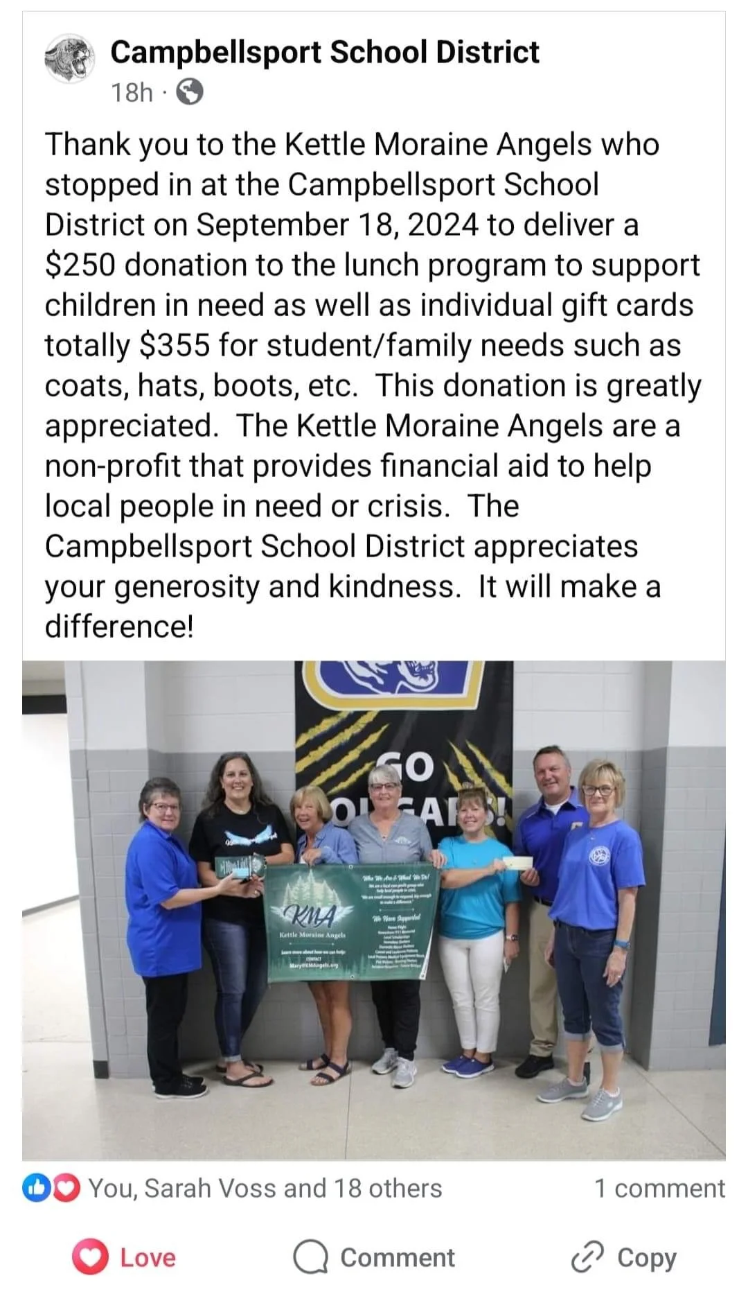 Medical Related Donations from the Kettle Moraine Angels! $2150.00