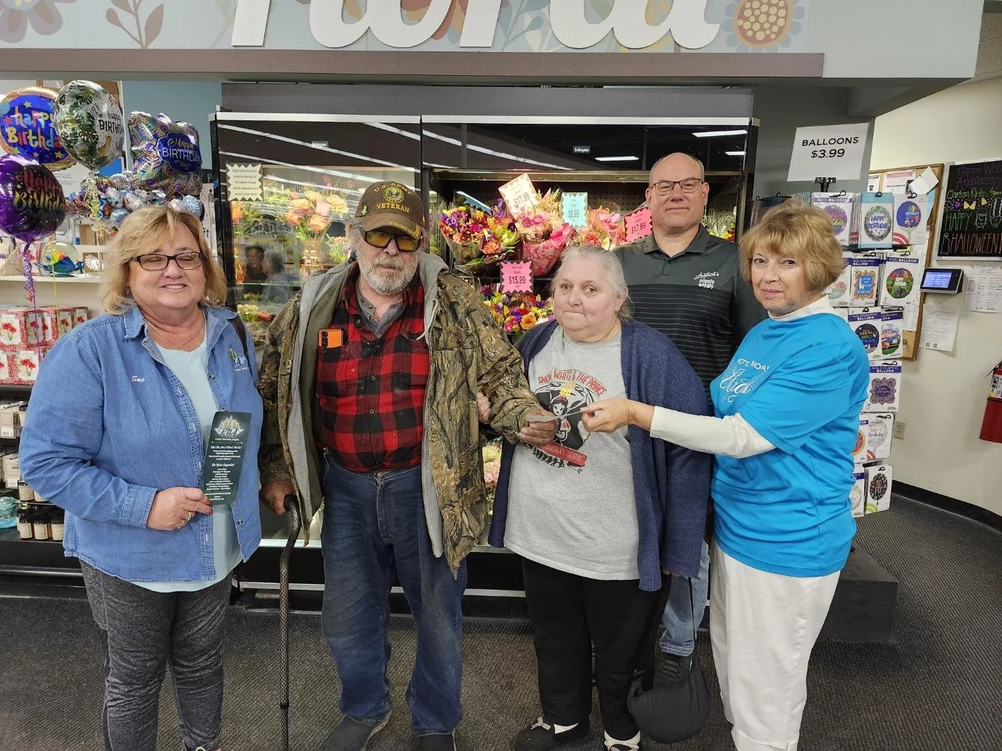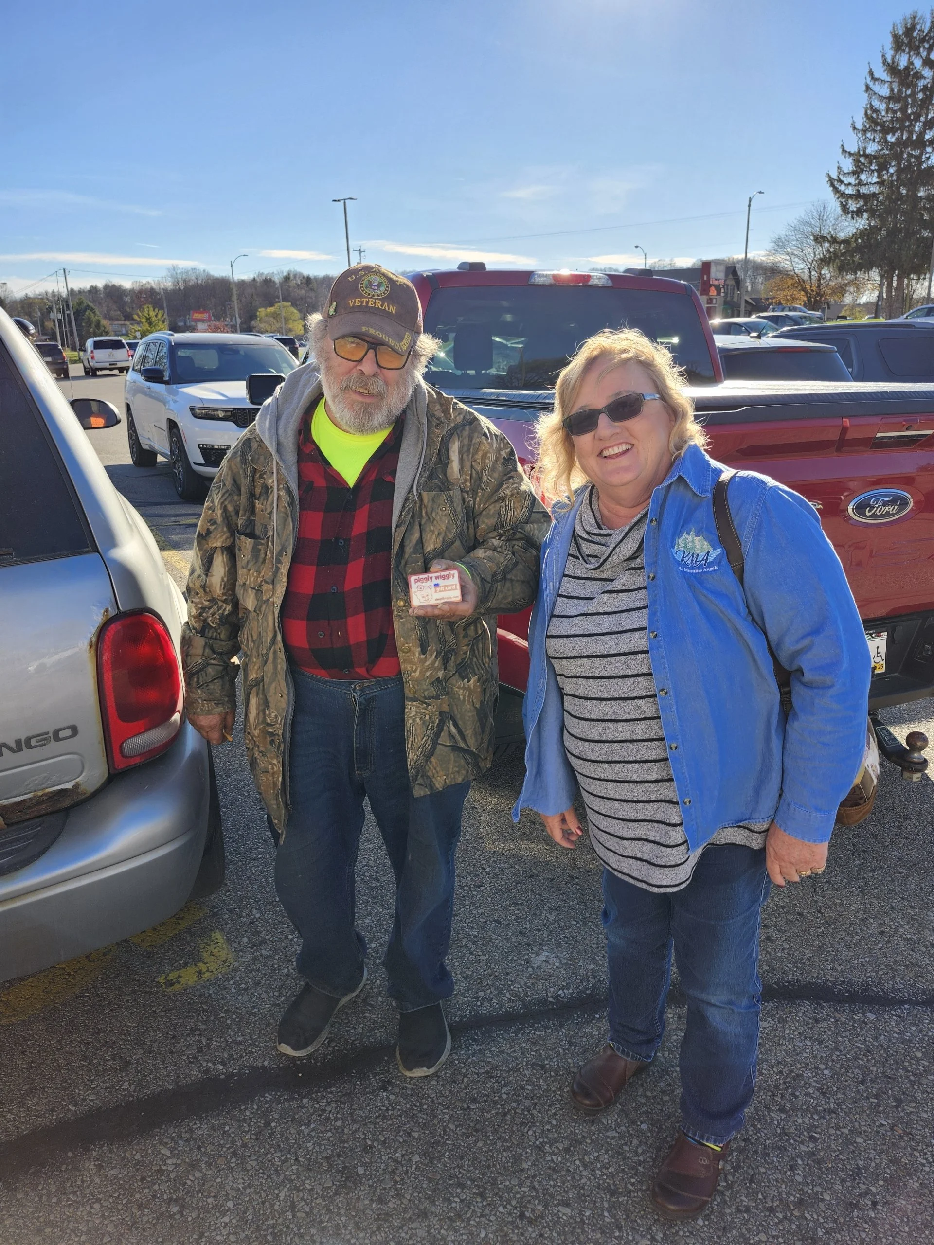 Delivered a check to Taz Kovacich. He has 3-6 months of rehab after 5 surgeries ! He was surprised and happy with our donation.