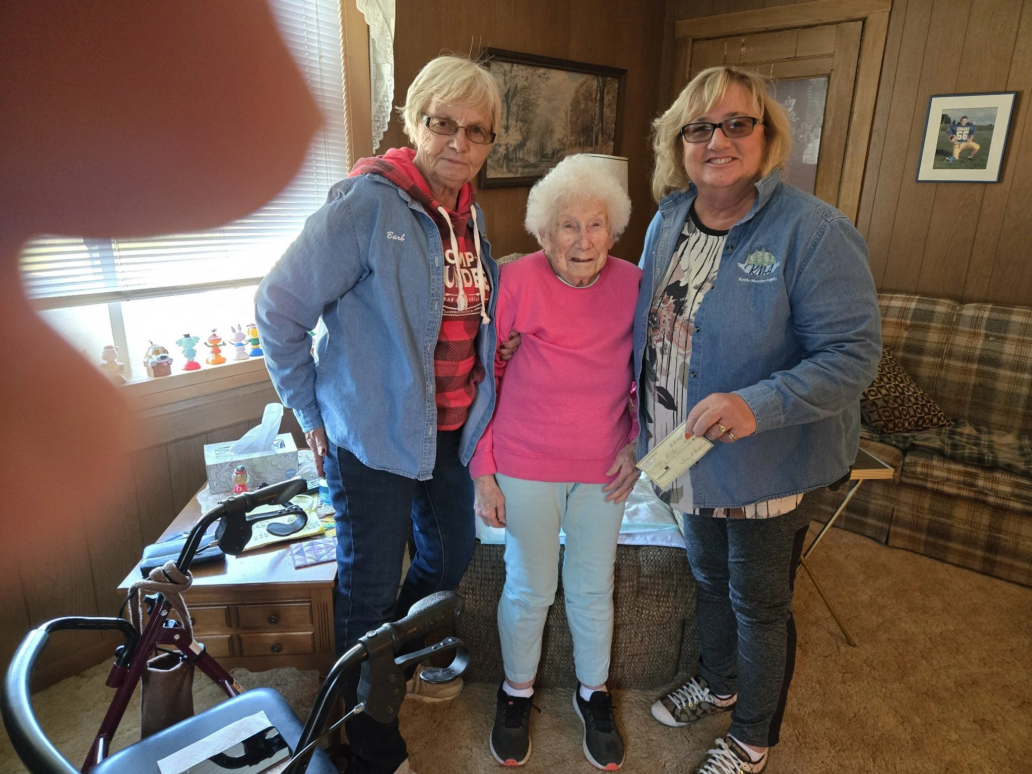 102 year old Millie Butzke was delighted with her check to help with medical and personal needs.